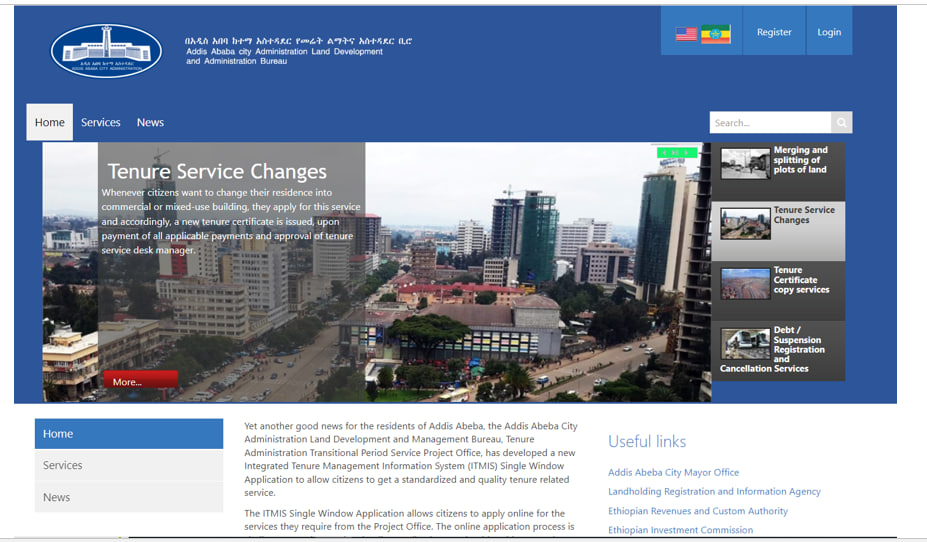 የድረ-ገጽ ፖርታሉን ተጠቅሞ በኦንላይን ከይዞታ ጋር የተያያዙ ግልጋሎቶች ዙሪያ ማመልከት ከፈለጉ ዜጎች/ደንበኞች መጀመሪያ የድረ-ገጽ ፖርታሉ ቀኝ-ጫፍ ላይ የመገኘውን ተመዝገብ (Register) የሚለውን ቁልፍ በመጠቀም መመዝገብ አለባቸው፡፡ ተመዝገብ(Register) የሚለው ምስል ከስር በምስል 4 መመልከት ይቻላል፡፡