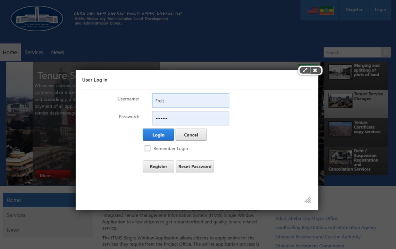• መግባት፡– ከምዝገባው ስኬት ቀጥሎ ዜጎች/ደንበኞች/ስታፍ ወደ ስርዓቱ ይገባሉ ይህም ይዞታ ለይዞታ ለማመልከት ወይም የለትከለት ተግባራትን ለማከናወን ነው፡፡