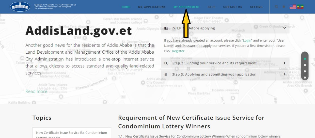 Obtaining the requested service means the end result of the requested service in terms of new possession certificate, improved possession service, service confirmation letter etc. Therefore, even if the application is filled online, all procedures are done without the need for the citizen/customer to be physically present. Payment will be made at the local Ethiopian Commercial Bank. Finally, the citizen/customer is required to come to the sub-city to pick up the document (letter, possession certificate or both). Citizens can easily find the property service office of the district through Google Maps